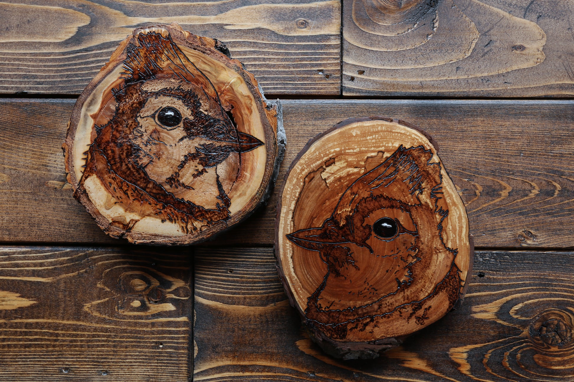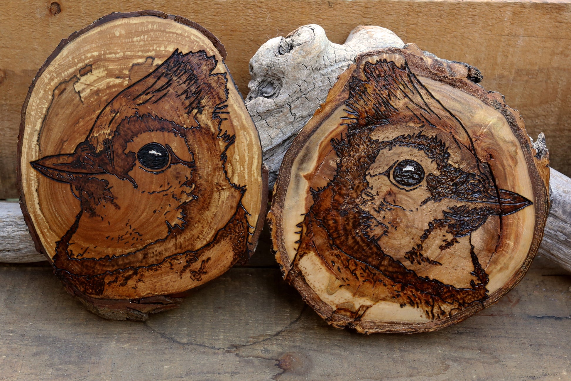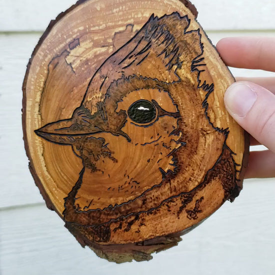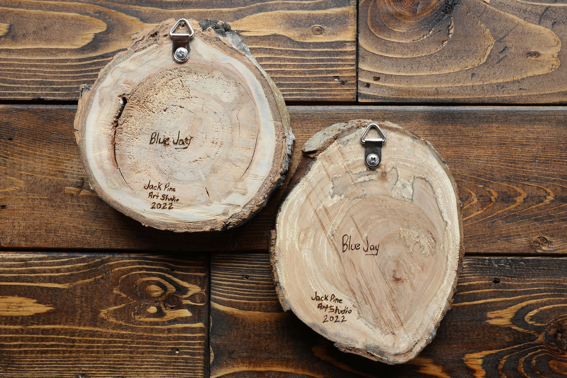 Blue Jays are two original artworks hand-burned by pyrography artist, Natasha Allen.